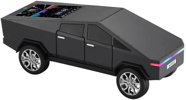 Futuristic Truck Model Bluetooth Replica Speaker with LED Display Screen Considerate Gift for Car Design Fans & Audio Users, TWS Stereo, FM, USB/TF Playback, LED Headlights, Built-in Mic (Black)