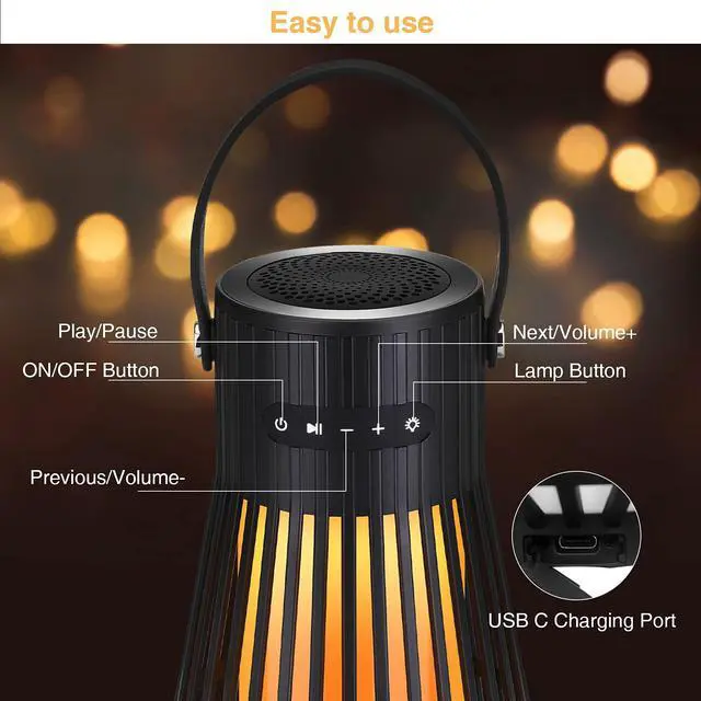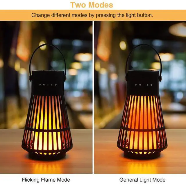 IN 1 flame ambiance speaker: The wireless LED speakers are not only speakers but also hanging lanterns, and night lights! Upgraded 120 LEDs torch flicker gorgeous dancing flames, not like other speakers only include 60, 96 LEDs, All 120 LEDs flicker together with warm yellow lights, forming a stunning flame, mimic extremely realistic & natural dancing flames, combined with great audio function, to create a romantic atmosphere for your yard, garden, party, and camping.
