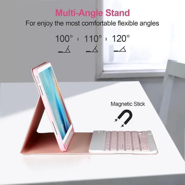 ^^ Magnetically Detachable Keyboard: For keyboard is magnetic and it can be strongly attached to the case or detach completely. When you do not need the keyboard can be stored away, easy to carry it on the go. It is easy, fast and stable to connect via BT, reconnect immediately turning it on. ^^ Buit-in Pencil Slot & Sturdy PU Material: keyboard case has a convenient left side built-in pencil slot that easy to storage and remove your pencil (Apple Pencil is Not included). Premium PU leather cover is waterproof, scratch proof and fingerprint proof, providing full protection for your beloved tablet. ^^ Long Standby