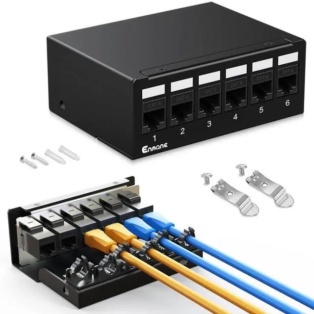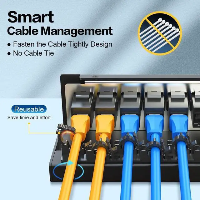Neat and Aesthetic Dust-Proof Design This 6 port patch panel comes with a dust cover, keeping internal wiring organized and preventing dust buildup, which helps extend the lifespan of your equipment. Ideal for home and office use. ^^ Easy Operation, Time and Effort Saving The 6port cat6 keystone patch panel featuring a ratchet lock design, it eliminates the need for traditional cable ties, simplifying installation and reducing setup time. Perfect for beginners. ^^ Cat6 Keystone Couplers Pre-installed couplers eliminate the need for punching down cables, allowing for easy plug-and-play installation and saving you time and effort.