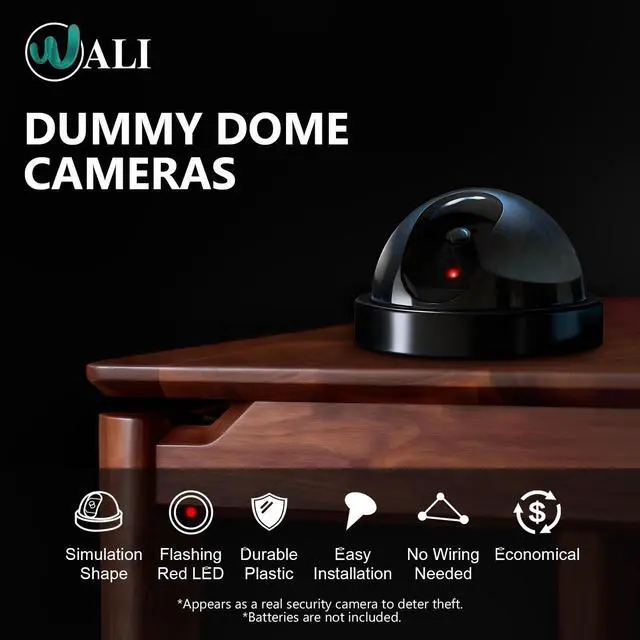 ^^ Package Includes: 6 x Wali Dome Simulation Camera (Black), 12 x Screw, 6 x Warning Security Alert Sticker Decal, experienced and friendly US based customer support available to assist 7 days a week, 2 pcs AA batteries operated (NOT included).
