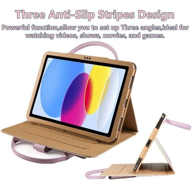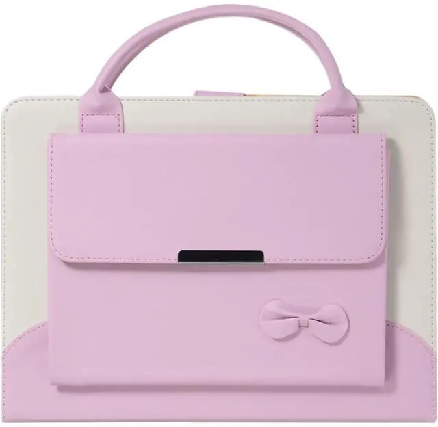 ^^ [Built-in kickstand]: with three anti-slip stripes design, this handbag case allows you to adjust the iPad to multiple angles securely. so you can read or watching videos comfortably hands-free.