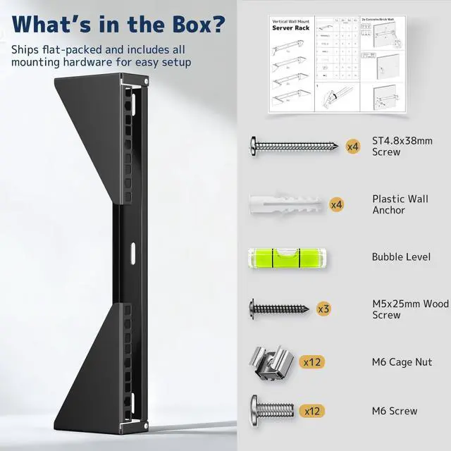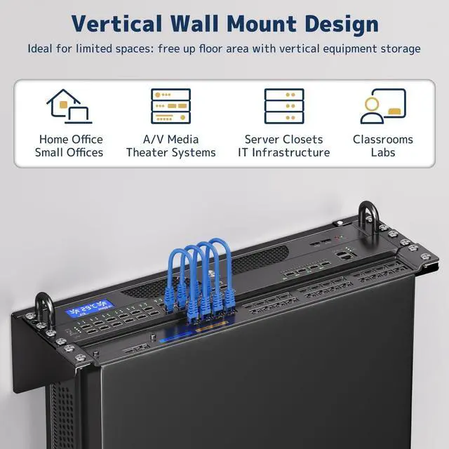 Standard 19" Compatibility: Fits standard 19-inch rack-mountable devices like switches, routers, patch panels, servers, and AV equipment; ideal for home labs, IT closets, and office network setups ^^