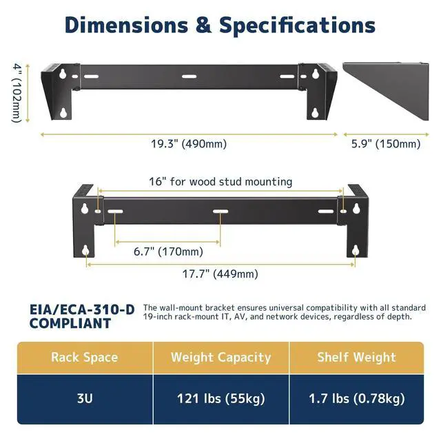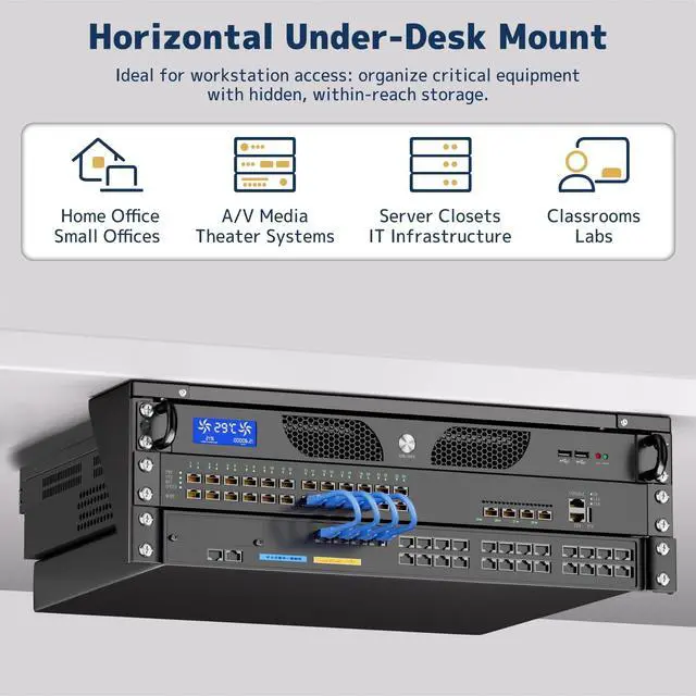 Flexible Mounting Options: Mount your equipment vertically on a wall or horizontally under a desk to maximize space. Great for tight spaces or areas with limited floor clearance ^^ EIA-310