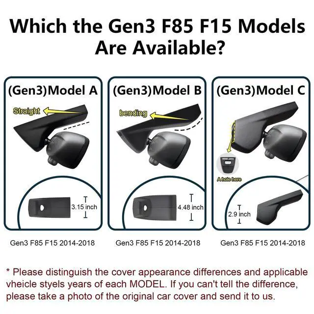 Difference of Model A & B & CThe model A, model B, and model C match the same vehicle year and must be distinguished by the vehicle sensor cover. The second picture is a comparison of the 3 models. ^^ Custom fit for BMW X5 Gen3 F85 F15Mangoal 4k dash cam can fit perfectly behind the rear view mirror like original. No messy wiring exposed, no complicated rewire at all. Perfectly intergrated with BMW X5 Gen3 F85 F15 2014 2015 2016 2017 2018 (Model B), X5M sDrive35i xDrive35i xDrive35d xDrive50i ^^ 4K Image and Ultra HD 2160P VideoUpgraded with f/ 1.8 big aperture lens and CMOS IMX335 chip to enable high-definition video at 2160P/30fps, Mangoal OEM style dash cam for can provide 4K image performance in all aspects.