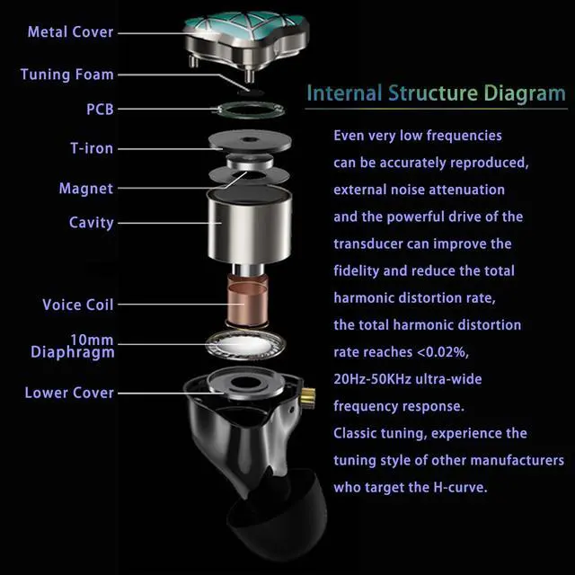 The ear tips adopt TPE material, which is comfortable and smooth to wear. Groove design at ear cap brings more stereo sound, enhancing details and sound stage. The short sound guide tubes reducing sound loss. TPE soft and environment-friendly fin is added to the rear of the cavity, providing a more comfortable, stable, lighter experience.
