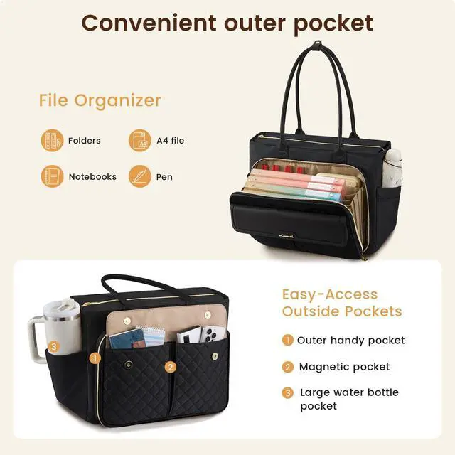 Accordion File Organizer Stay Professionally Organized. Designed for teachers, nurses, and busy professionals, this LOVEVOOK tote bag features a built-in accordion file divider with 4 compartments for A4 documents, lesson plans, or patient charts. Whether you use it as a work bag or a tote bag for college, it keeps all your papers flat and instantly accessibleno more digging through loose sheets during class or shift change. ^^ Beauty Meets UtilityThe front magnetic snap pocket offers instant access to your phone, badge, or keysno zippers, no delay.