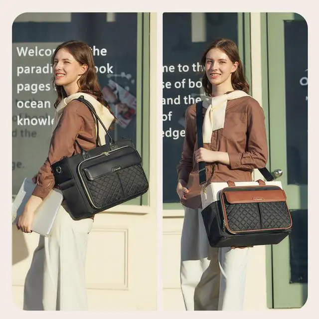 ^^ Padded Laptop CompartmentsThis laptop tote bag for women includes a dedicated padded sleeve for up to 15.6 -inch computers and a separate cushioned compartment for tablets. Whether you are a teacher or a working person, both devices stay secure and ready when you are. The laptop bag Such a smart design keeps both your essential electronics cushioned, organized, and instantly accessible, making it ideal for teachers, writers, or anyone who needs to switch between devices on the go. ^^ Versatile handbags for womenAdapt to any situation effortlessly. Built for professionals who need to stay mobile, this tote bag includes a detachable, adjustable shoulder strap for hands-free comfort and a luggage sleeve for smooth travel.