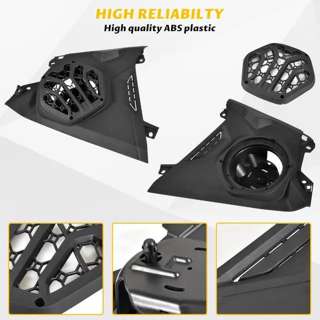 Notice: The speakers are not included, most of 6.5 inches speakers can be installed on this panel ^^ [COMPREHENSIVE COMPATIBILITY] - Most of the 6.5" Speakers can mount on this panels, the height of the speaker not exceed 2.8 inches; Please confirm the size of the speaker carefully before purchasing ^^ [HIGH-QUALITY INNOVATIVE MATERIALS] - Made of high density ABS plastic, durable service; The high density of the material reduces the frequency of vibration in the speaker and always maintains the best sound effect ^^ [ADVANCED TECHNOLOGY] - Three-dimensional wraparound design; Block the mud, dirt, sand or waters to enter your speakers; The use of sports elements designed to make the audio appearance more modern, but also saves you more space ^^ [EASY INSTALLATION] - Easy to install, No cutting required, accurate size;