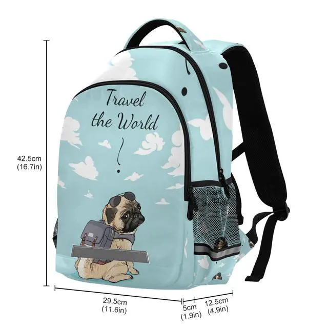 Fashion School Backpack: 11.6 x 6.9 x 16.7 inches/ 29.5 x 17.5 x 42.5 cm, 1 x main compartment, 1 x front compartment, 2 x side pouchs, 4 x pockets inner the compartment, easy access laptop and iPad compartment separate from roomy main compartment, front organizational compartment for all of your writing utensils, two side pocket for an umbrella and water bottle ^^ 4-Sided