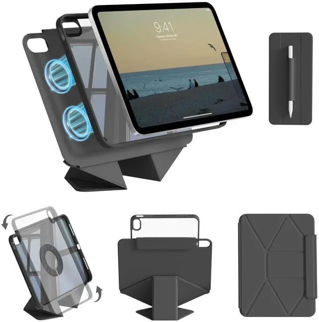 • Multiple Placement Angles: The multi-fold cover with a transparent, detachable magnetic back panel allows for multiple placement options, including 720 rotation and vertical and horizontal placement. The transparent back panel can be detached and attached to the refrigerator