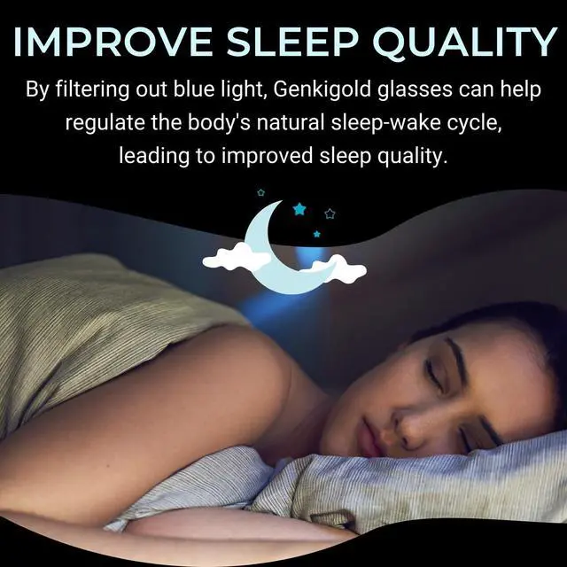 ENHANCE SLEEP QUALITY: Genkigold blue light blocking glasses are crafted with premium materials, offering an affordable solution to improve your sleep by effectively filtering out blue light emitted from screens ^^