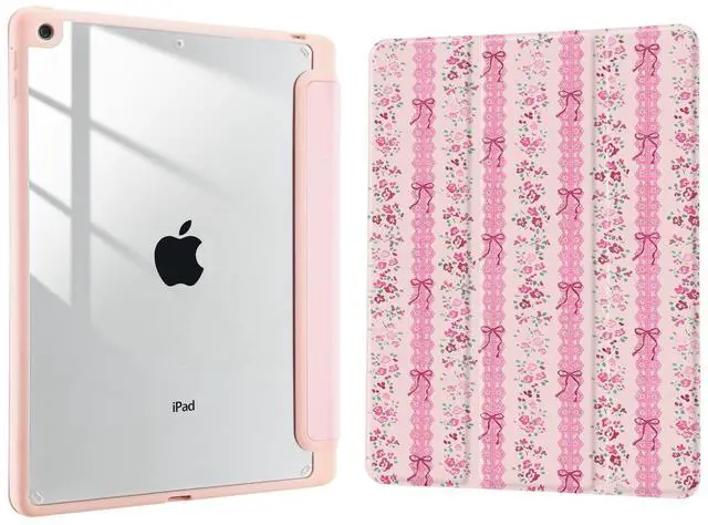 Joyland Pink Bow & Floral for iPad 6th/5th Generation 9.7 Inch 2018/2017,iPad Air 2/Air 1 Case,Built-in Pencil Holder with Shockproof Cover Transparent Back Shell Auto Wake/Sleep,Pink