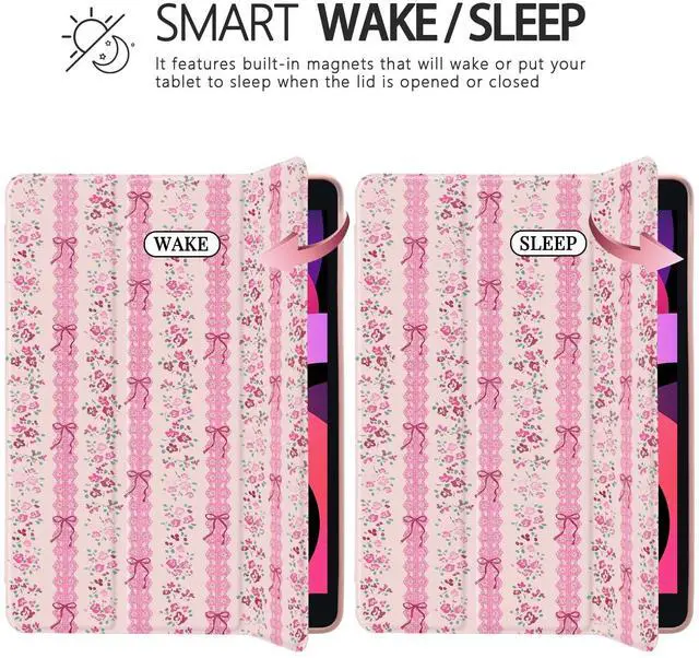Auto Sleep Wakeup: Bow Pattern iPad Cover Built-in magnet, Sensitive Auto Wake/Sleep, More energy saving, extends your iPads batter. Slim Lightweight Tri-fold Stand with viewing and typing angle ^^
