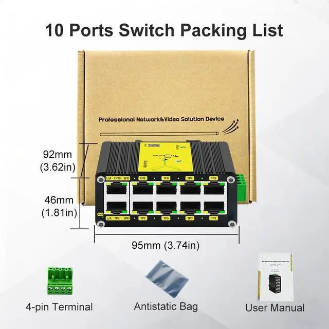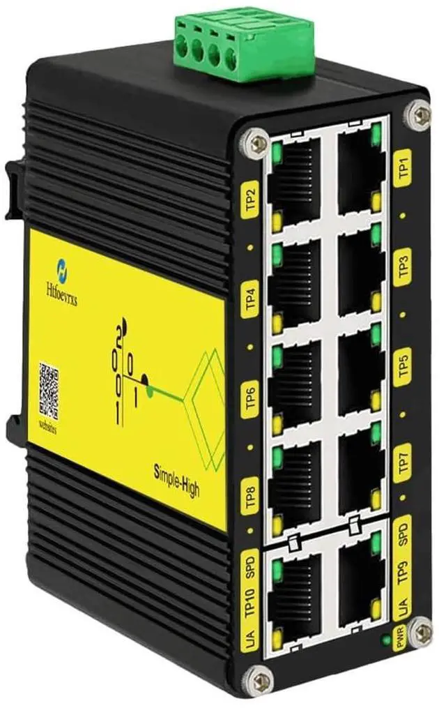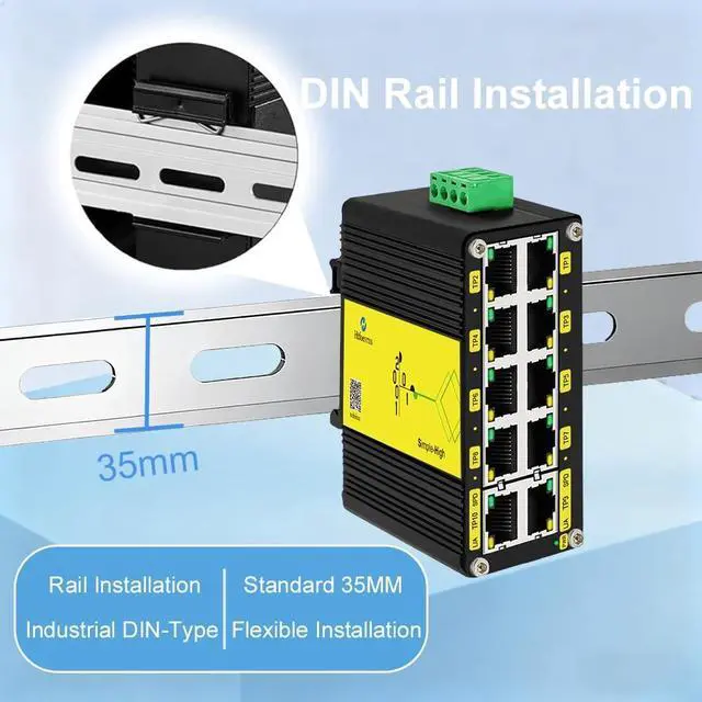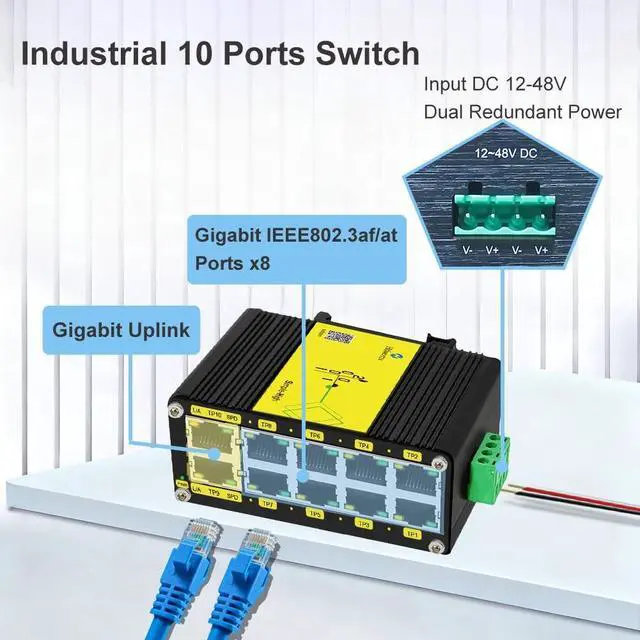 [ - ]: Supports 12 - 48V wide voltage DC input for power redundancy. Mini Industrial 5-Port 10/100/1000T Gigabit Ethernet Switch with 12~48VDC wide range power input.