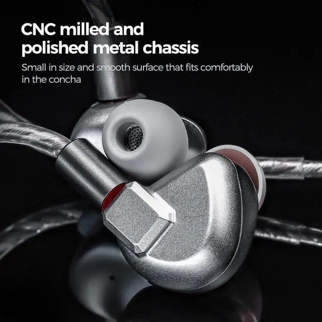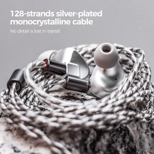 The outline of the unit is one continuous curve. Lightweight, sturdy, understated that fits right into your EDC bag. ^^ Ergonomic design Shape of the unit is a molded to fit comfortably in your concha. Matte finish adds an extra layer of resilience against ear wax. Two vent holes are drilled on the sides of the chassis to lower inner ears internal pressure. All this combined results in comfortable long listening sessions. ^^ Stock cable that just works S12 comes with a detachable 0.78 mm dual-pin cable. Its weaved together with 128 strands of silver-plated monocrystalline copper cable.