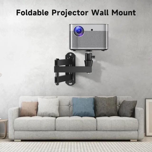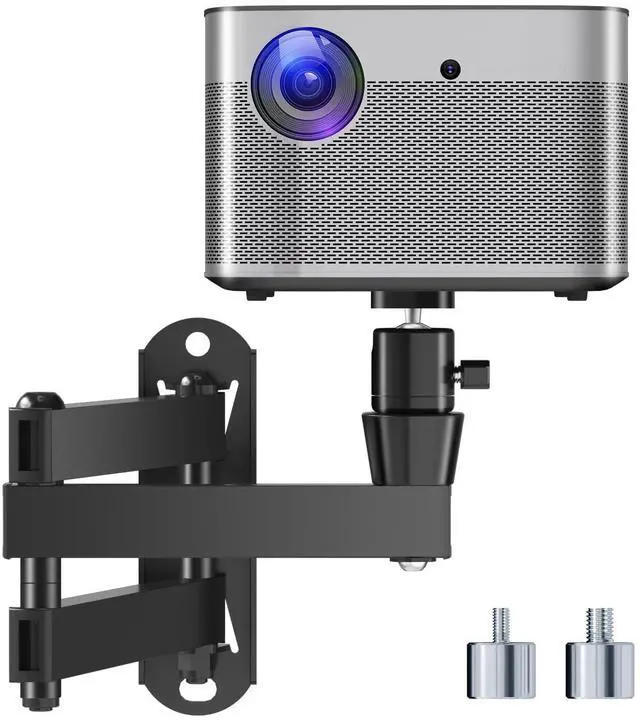 mount your projector (NOTE: Projector not included). ^^ FULLY ADJUSTABLE DESIGN Features a versatile articulating arm with 180 swivel and tilt, along with a 360 rotating head for precise positioning. Easily adjust the angle for the perfect viewing experience in any environment. ^^ FLEXIBLE POSITIONING The projector head tilts up to 30 up and 90 down, while the 360 rotation allows optimal placement for different setups. Perfect for home theaters, offices, classrooms, or security camera installations. ^^ COMPLETE PACKAGE & RELIABLE SUPPORT Includes 1x Projector Bracket, 1x Mounting Hardware Kit, and 1x User Manual.
