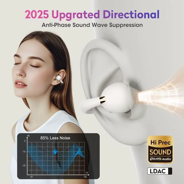 FINALLY, HEADPHONES THAT LOVE YOUR GLASSES ( 4.7 g Weightless Clip) Designed for ears that wear glasses first. The 4.7 g feather-light clip rests around your ear with ZERO pressure on temples or ear canal. Ergonomic spring fits all ear shapes from 8-hour workdays to long flights, forget you're wearing them. ^^ YOUR MUSIC WITH 360 SAFETY (Open Ear Design) Run city streets, bike trails, or walk through crowds with full awareness. Open-ear design beams music in while keeping traffic, conversations, and alerts crystal clear. It's not just audio it's your personal safety gear.