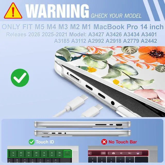 Check Your Model: Designed exclusively for MacBook Pro 14-inch (2026 20252021, M5 / M4 / M3 / M2 / M1 Pro/Max) models (A3427 / A3426 / A3434 / A3112 / A3185 / A3401 / A2918 / A2992 / A2779 / A2442). Precision-molded to fit snugly without gaps or bulk, ensuring the lid closes smoothly and all ports remain fully accessible. Please confirm your model number before purchase. ^^ Plastic Hard