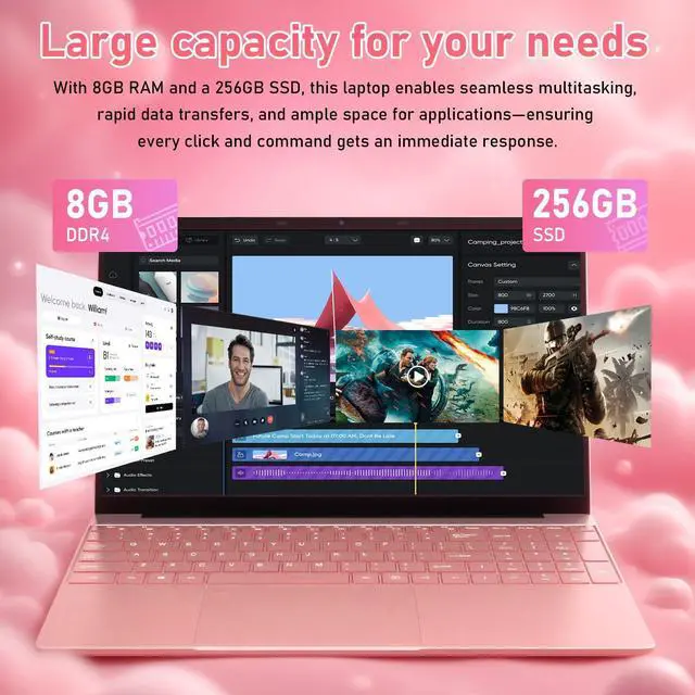 STYLISH ROSE GOLD DESIGN & 15.6 FHD VISUALS Stand out with a sleek Rose Gold finish that combines elegance with durability. The 15.6 -inch IPS display delivers FHD 1080P resolution (1920x1080), offering vivid colors and sharp details for movies, online classes, and photo viewing. Unlike standard HD screens, this IPS panel ensures clear viewing angles from any direction ^^ SECURE FINGERPRINT ACCESS & BACKLIT TYPING Experience premium features rarely found in budget laptops. The built-in Fingerprint Reader provides instant, password-free login to protect your privacy. Work or study comfortably in dim environments with the full-size Backlit Keyboard, making it an ideal student laptop for dorms or a business computer for late-night projects ^^ FAST BOOT-UP & SMOOTH MULTITASKING Powered by an Intel Processor and equipped with 8GB RAM, this notebook handles web browsing, document editing, and school assignments with ease.