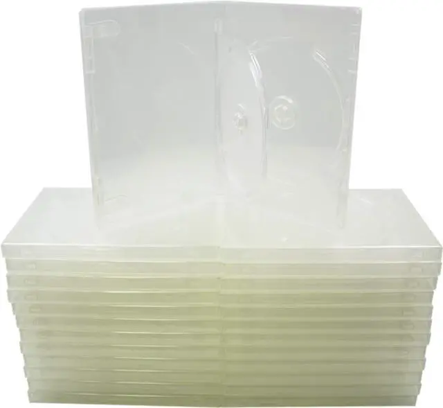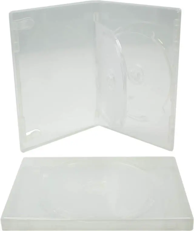 These are standard size 14mm thick clear double DVD boxes. These double cases feature a hinged center tray to hold your second disc, which leaves space for your booklet to be held in two clips on the front. The cases feature a full clear wrap around sleeve to showcase your artwork on the outside of the case! Clear is perfect for displaying double sided artwork, giving you twice the space to show your creativity. These are perfect for replacing scratched up and torn double DVD cases and for producing new DVDs with!