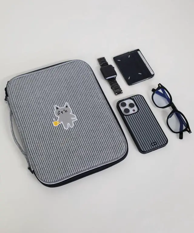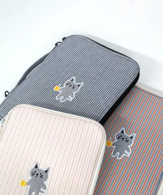 [Charming Stripe Design] Vintage-inspired striped fabric with playful color combinations, making your laptop pouch both stylish and practical ^^ [Soft Cushion Lining] A gentle sponge layer between the outer and inner fabric helps protect your device while adding a comfortable feel ^^ [Organized Storage] Interior mesh pocket and pencil holder allow for neat storage of devices and daily essentials ^^ [Convenient to Carry] Designed with a sturdy top handle and a side D-ring, so you can easily attach keychains or charms ^^ [Smooth Wide Zipper] Wide-opening zipper makes access easy without snagging, offering ample space for your laptop and accessories