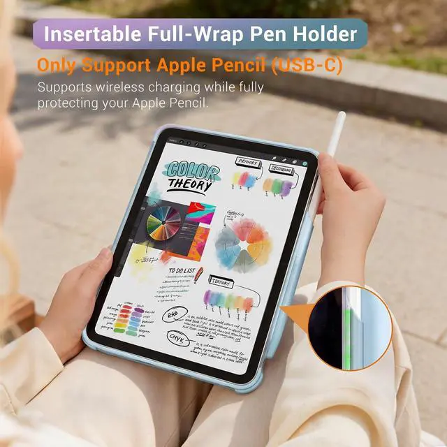 Multi-Angle Stand: The case features 4 stand modes, including classic trifold stand design, catering to all your learning, life, and entertainment needs. You can make it stand in any way you like, making your usage both fun and stylish ^^ Dedicated USB-C Apple Pencil Holder Unique built-in pencil compartment securely stores and protects your Apple Pencil (USB-C). Never worry about losing your Pencil while on the go easy to access and carry.
