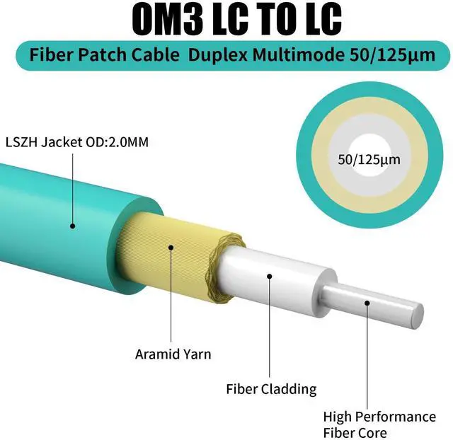 Fiber information: 2M (7ft) LC to LC Fiber Patch Cable OM3, LC cable Multimode Duplex is 50 / 125 m.