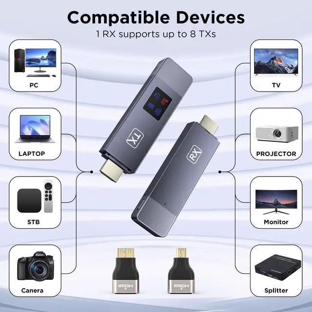 Digital Display: Hdmi Wireless Transmitter and Receiver is designed with newly upgraded LED display, connection status, signal status, output status, power status can be seen at a glance, all-round upgraded products, all-round to meet the needs of the face of our work and life more leisurely and easy. ^^ Compact and Exquisite, Easy to