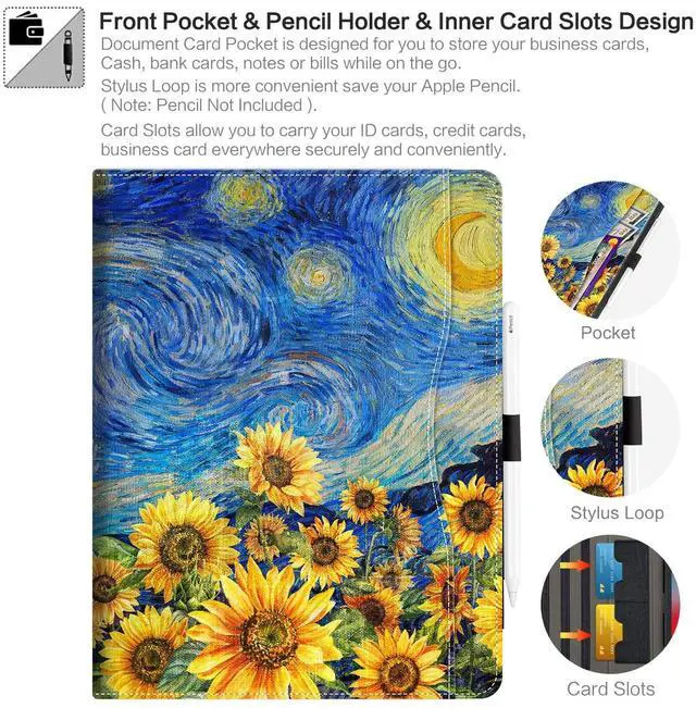 Note: Pencil Not Included ) ^^ [ Reliable Material & Magnetic Closure Design] -- Premium thicken padding shockproof PU leather iPad Pro 12.9 inch Case with vivid 3D printed Van Gogh's Starry Night Sunflowers Design lined with soft interior microfiber give you full protect to prevent drop and scratches. Super Strong Magnets to keep the case closed well and prevent accident drop, never worry about screen broken happened ^^ [ Smart Auto Sleep/Wake Function & Precise Cutouts ] -- Cutebricase for iPad Air 13-inch Case (N4/M3/M2) 2026/2025/2024 built-in magnetic strip ensure it automatically wakes your tablet when opened and puts it to sleep when closed to save battery life. Exquisite workmanship makes perfectly aligned cutouts of the charging ports, camera and speakers give full access