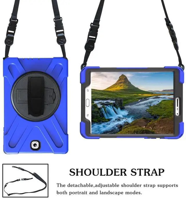 Case for Samsung Galaxy Tab S2 8.0 2015 (SM-T710/T713/T715/T719), Portable Heavy Duty Dropproof Protective Cover Case with 360 Rotating Stand, Handle & Shoulder Strap, Stylus Pen ^^