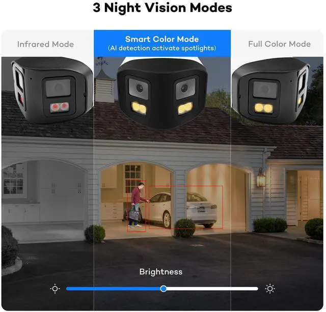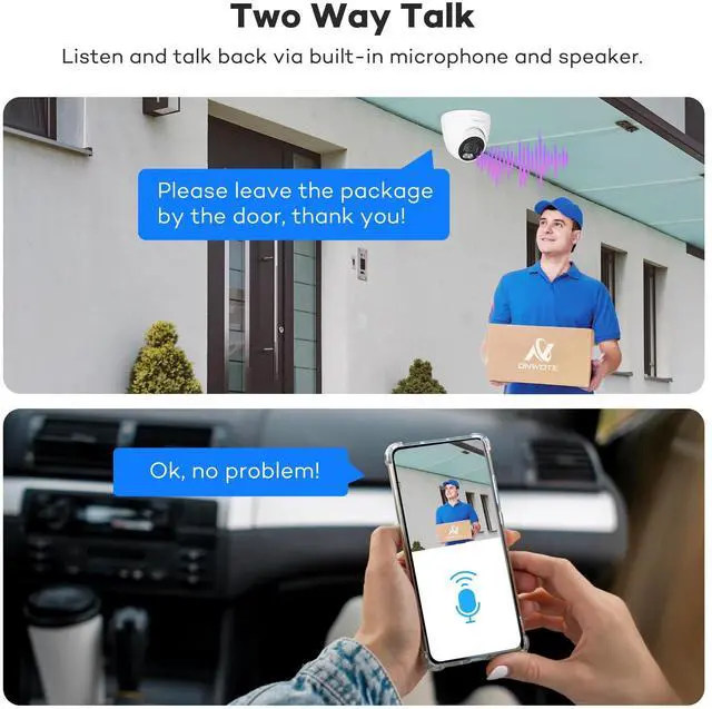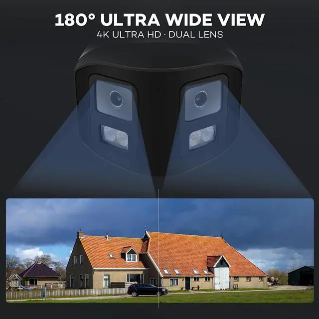4K 8MP Ultra HD-- 4096 (H) x 1944 (V) 8 million pixels. ^^ 180 Dual-Lens Ultra Wide Viewing Angle ^^ 2 Way Talk-- Hear and speak to anyone through the camera. ^^ Smart AI Human Vehicle Detection-- Reduce false alarms and save storage space. ^^ Smart Color Night Vision-- AI human vehicle detection trigger spotlights, deliver color night vision. ^^ IP66 Durable Housing-- Metal housing, indoors or outdoors, fully weatherproof. ^^ Troubleshoot Technical Issues-- We offer 24/7 professional technical support- Messages or 0.5 -2h PHONE support; we will solve it within 8 hours.