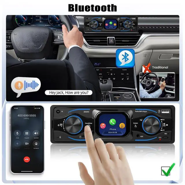 Ultra Clear and Stable Bluetooth Hands-Free TalkingTake and make calls hands-free in this single din car radio system via a Bluetooth connection to your smartphone. This bluetooth stereo is designed with a built-in microphone and integrated bluetooth technology to capture your voice more clearly and enhance your calling experience with a stable signal