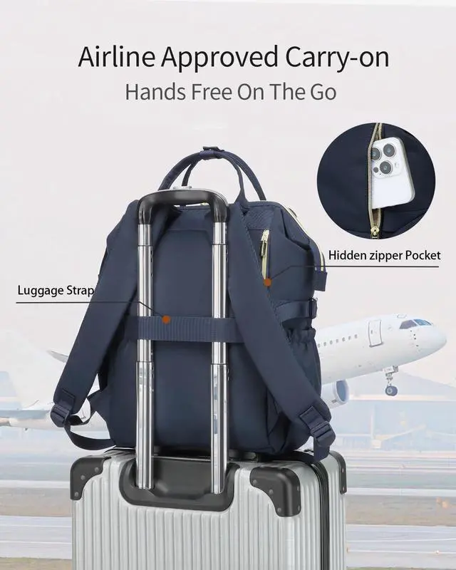 Travel Friendly: Airport Approved Size. The luggage sleeve allows backpack fit on luggage/suitcases by sliding over the upright handle tube for easier carrying. Have a hidden pocket on the back side, which is great for your passport or wallet to keep it out of reach or pickpockets! It has padded straps for shoulder comfort. Top handles allow for easy grabbing ^^