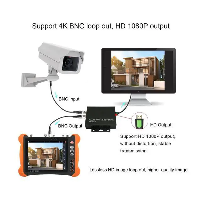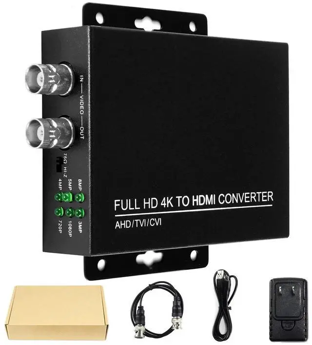 [ CVI/TVI/AHD/CVBS to HDMI ] Our converter works with CVBS, AHD, CVI, TVI cameras ( It converts security camera signals to HDMI monitor). HDMI output 1080P 60Fps, connect HDMI output cable, HD-LINK light, display yellow light. Long transmission distance (500-700 meters through coaxial cable). Different resolution, different transmission distance. It converts TVI CVI AHD CVBS BNC video signal to HDMI ^^ [ Auto Identify Input ] WANLUTECH full hd 4k to hdmi converter is plug-and-play and can automatically identify 720P/1080P/3MP/4MP/5MP/8MP resolution, and has LED indicator to show what resolution the video input has detected ^^ [ HDMI Port & Power Port ] WANLUTECH full HD 4k to HDMI converter has HDMI output port and DV 5V micro-USB port.