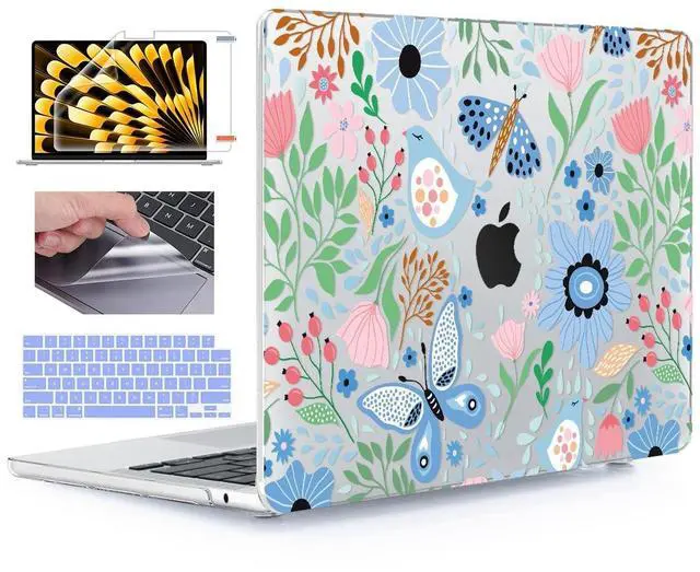 YSCLBAHUK for MacBook Air 13.6 inch M5 M4 M3 M2 Case 2026-2022 Model A3449 A2681 A3113 A3240 Cover, Printed Pattern Plastic Hard Shell Cover, Keyboard Cover+Screen+Trackpad Film,Flower Butterfly