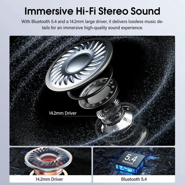 Playback Time: These wireless earphones deliver 6-8 hours of use on a single charge, which can be extended to 48 hours with the charging case. The case fully charges in just 1.5 hours, meeting your needs for sports, entertainment, work, travel, and daily activities. Additionally, the wireless headphone feature with a smart LED digital display, you can easily know the battery consumption on both the earbuds wireless Bluetooth and the charging case so you can master the time to charge it. ^^ Immersive Hi-Fi Stereo Sound and 5