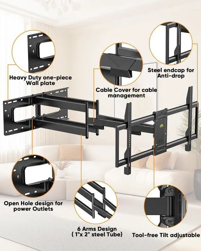 {Sturdy and Reliable}This 85 inch tv wall mount is built with sturdy 6 section steel arms construction, all of our tv mo
