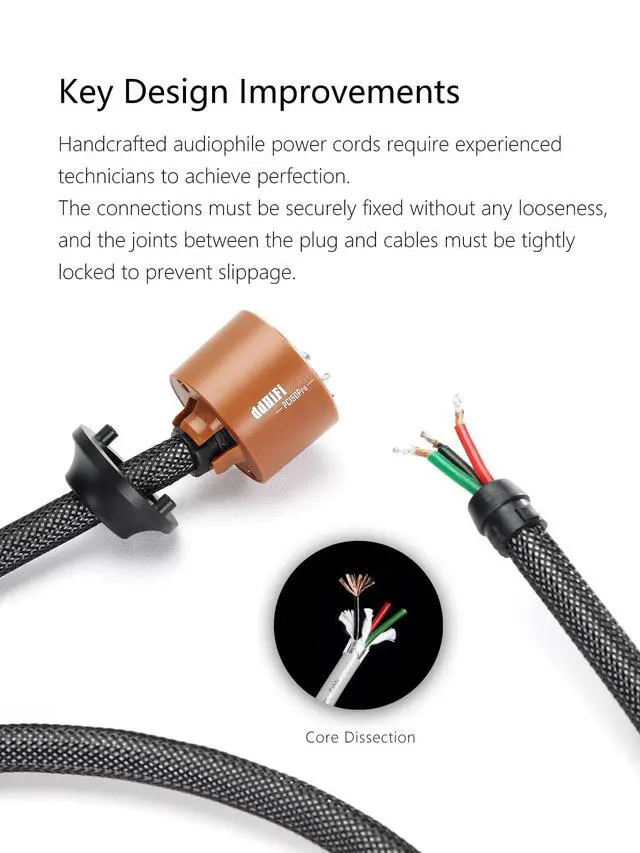 Superior craftsmanship: Handcrafted audiophile power cords require experienced technicians to achieve perfection. The connections must be securely fixed without any looseness, and the joints between the plug and cables must be tightly locked to prevent slippage.