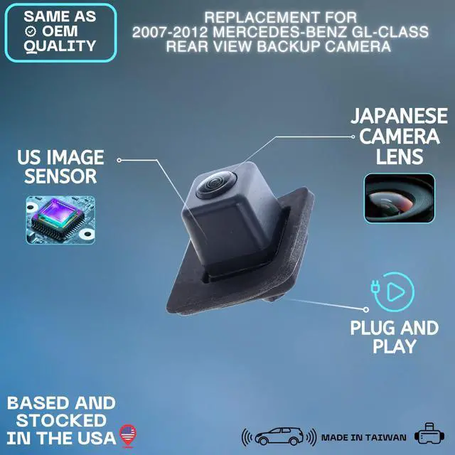 {Plug and Play} This device can be easily plugged into the existing OEM video harness. ^^ {Replaces} Backup Camera Compatible with 2007 2008 2009 2010 2011 2012 Mercedes-Benz GL-Class ^^ {OEM#} 1648201497 1648200297 1648201497 1648201597 ^^ {Specs} *Angle: 170 Degrees *Waterproof Level: IP68 *Resolution: 600 TV lines *Pixel: 728 x 582 *Signal: NTSC/PAL * Illumination: 0.1 Lux light (minimum) *Power: DC 12V ^^ {Important note} We recommend contacting your local dealer to confirm that the part number you are purchasing is an exact match for the part number you require, prior to making your purchase.