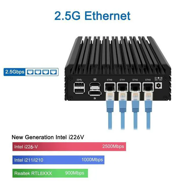 2 PICE 3.0 slot) configurations, you can install your own ram and ssd for DIY depends on your application. ^^ Professional OS installedMGSRN305 Pre-installed pfsense plus 23.0X OS and you can install OPNsense, OpenWrt, Unbutun, windows 10 or 11 and other popular open-source software solutions on this Firewall Router. Which you can use it as an Firewall, Netgate, Softrouting, NAS, Firewall, ESXI, PVEvirtualization platform(support VT-X, VT-D). ^^ Intel I226 2.5G bE Network CardThis Firewall Router equipped with 4*Intel I226 Network card maximum up to 2.5G bE, bring you more faster and professional network usage(some system suppliers maybe have not released compatible driver to match yet, suggest to install newest version of following systems: pfSense 23.01 (or 2.7. 0), Untangle ( via virtual machine) OPNsense 22.1, OpenWrt, ROS7, ESXI, Proxmox, CentOS etc). ^^ Quality With WarrantyIf you have any questions on MOGINSOK Firewall Appliance MGSRN100, feel free to contact us(if you want to get the latest bios update, you can send us message via ). We offered 12 Months warranty for it and WE'LL REPLY YOUR Questions within 12 hours (during Workdays).