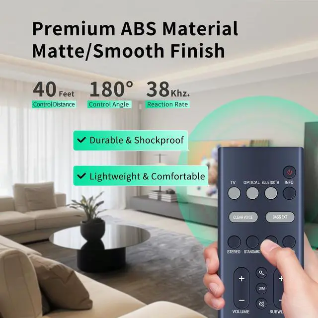 CompatibilityWDZP New Soundbar Remote Control Replacement fit for Yamaha SR-B30A SR-B40A Dolby Atmos Sound Bar with Built-in Subwoofers ^^ No Programming & Battery EfficiencyRequires no pairing or complicated setupsimply insert the 2*AAA batteriesNo Included) and youre ready to go. Designed for long-lasting battery life, so you can enjoy extended use without frequent replacements. ^^ Easy-to-Use Design for All Ages Designed with simplicity in mind, this remote features intuitive buttons for volume control, track skipping, bass adjustments, and more. Perfect for anyone in the family to use ^^ Long Range and High-Quality SignalEnjoy full control from up to [insert range, e.