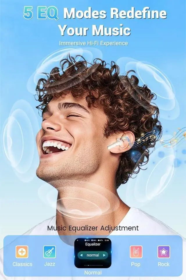 Design & Sweat-Resistant: The wireless headphones feature a sleek stem design with smooth curves and a metallic finish for a high-end, modern look. The pocket-sized charging case makes them easy to carry anywhere. Built to handle daily use, the ear buds wireless bluetooth earbuds are sweat- and dust-resistantperfect for commuting, walking, sport, running, gym or light workouts travel without worry. ^^ Hi-Fi Sound Quality & 5