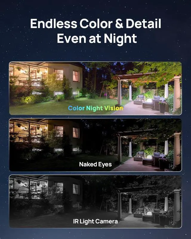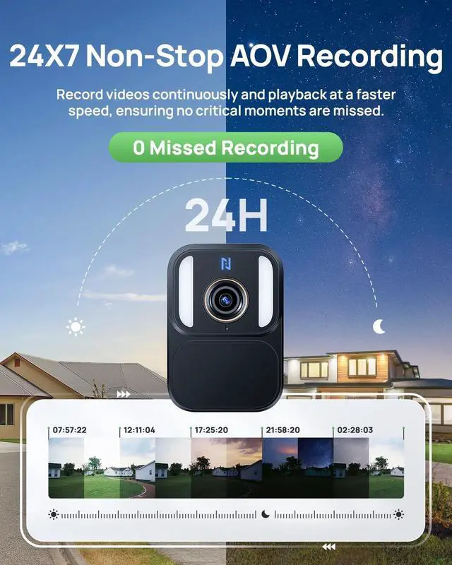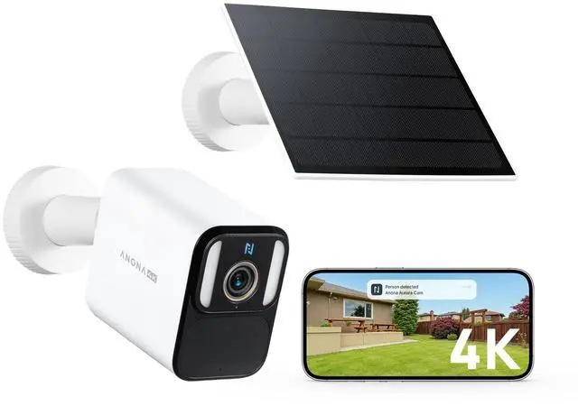4K UHD Vision & Color Night VisionAurora solar security cameras wireless outdoor captures every detail with stunning 4K resolution and 8 megapixels, giving you crystal-clear visibility and reliable security, day and night. Equipped with a starlight sensor and an F 1.2 large aperture, Aurora provides vibrant color night vision even in low-light conditions. ^^ Always-On VideoAnona Auroras Always-On Video (AOV) ensures uninterrupted time-lapse recordings without the need for AC power. Capture every moment from dawn to dusk, including those fleeting moments. Enjoy a vibrant recap of your daily life, capturing the flow of moments with ease.