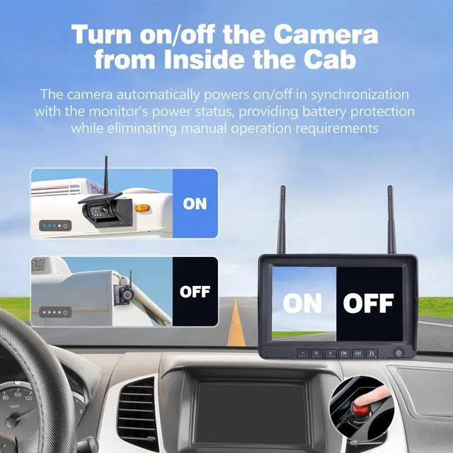 Just pop in an SD card (supports up to 128GB). The system continuously records over older files, so you'll always have the latest footage without worrying about storage space. ^^ Strong & Reliable Wireless Connection Enjoy crystal-clear, real-time video without delays thanks to our powerful 2.4GH z wireless technology with dual antennas. Works flawlessly up to 330 feet away (in open areas) and stays connected even at highway speeds. Perfect for all your vehicles from daily drivers like cars and SUVs to work trucks, RVs, boats, and heavy-duty trailers. Just install and go the system automatically maintains a strong signal so you can focus on the road. ^^ Parking Helper & Custom View Modes Make parking a breeze with smart guidelines that show exactly where you're heading - just like factory-installed systems! Easily adjust the camera view with simple settings (flip or mirror the image) to get the perfect angle no matter how or where you mount it. Works great whether installed on your bumper, tailgate, or aftermarket locations.