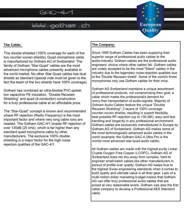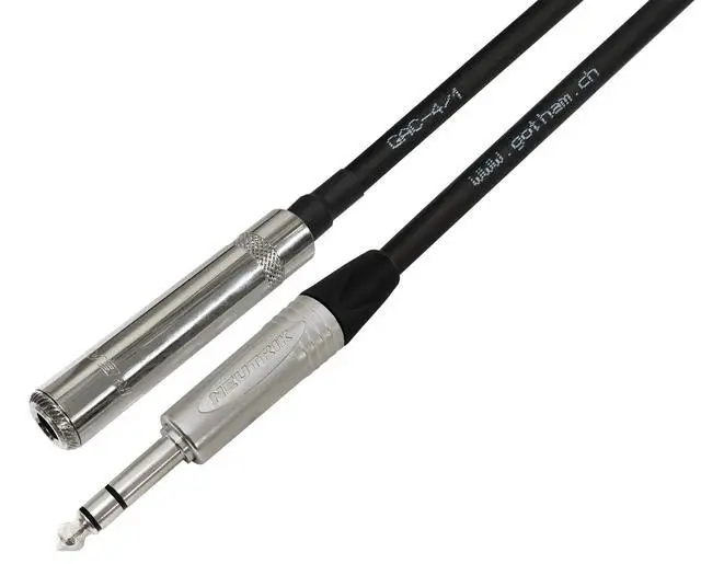 Custom made - Quad Stereo Headphone Extension cable using Gotham GAC-4/1 (Black), Ultra-flexible, Star-Quad, 4-Conductor, Dual-Shielded cable and Neutrik NP3X inch ( 6.35 mm) 3-Pole TRS Stereo Plug to Neutrik-Rean NYS2203P inch ( 6.35 mm) 3-Pole Jack Comes bundled with a Neutrik-Rean NYS227 3-Pole 3.5 mm plug to 3-Pole inch jack Adapter for additional utility 10 Foot