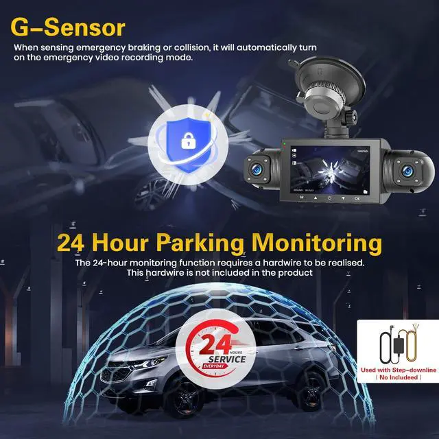 Note: 24/7 parking monitor function requires to purchase an additional hardwired kit for use ^^ Easy Installation and
