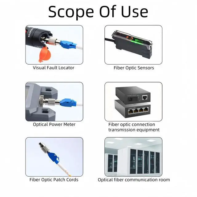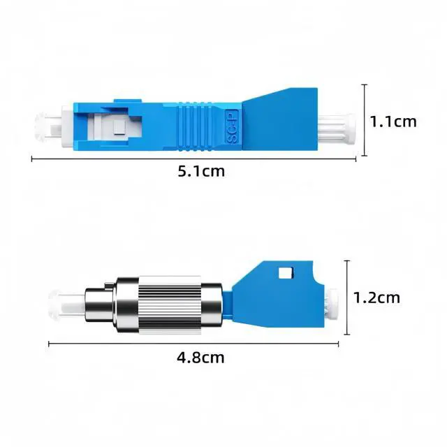 Package IncludesFC Male to LC Female Adapter and SC Male to LC Female Adapter. ^^ Compact DesignFiber connector has mini size and lightweight, making it easy to carry. ^^ Durability and PracticalityThe FC Male to LC Female Adapter and SC Male to LC Female Adapter is constructed using durable materials and precision manufacturing techniques, enabling it to withstand multiple connections and disconnections. This results in a lifespan of over 1000 cycles. ^^ Product ParametersInterchangeability (dB) 0.20; Insertion Loss (dB) 0.20; Number of Mating and Unplugging Cycles > 1000 times. ^^ Widely UsedThis adapter is extensively utilized in optical fiber distribution frames, optical fiber communication networks, optical fiber broadband access networks, optical fiber CATV systems, optical fiber instrumentation, and optical fiber local area networks.