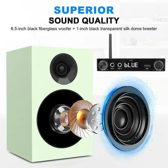 Remote Control: Versatile for Stereo Speakers & Karaoke Built with dual mic interfaces, this amplifier turns your passive bookshelf speakers into a karaoke or conference system. Control volume/modes remotely from 10 metersideal for desktop speakers setups where convenience meets pro-grade audio. ^^ 5.