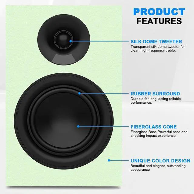 Avocado Green: Stylish Passive Bookshelf Speakers The unique avocado green matte cabinet paired with a removable magnetic mesh cover makes these passive bookshelf speakers both dustproof and decor-friendly. Designed to blend into modern homes or offices, they elevate spaces as both premium stereo speakers and artistic accents. ^^ 3.